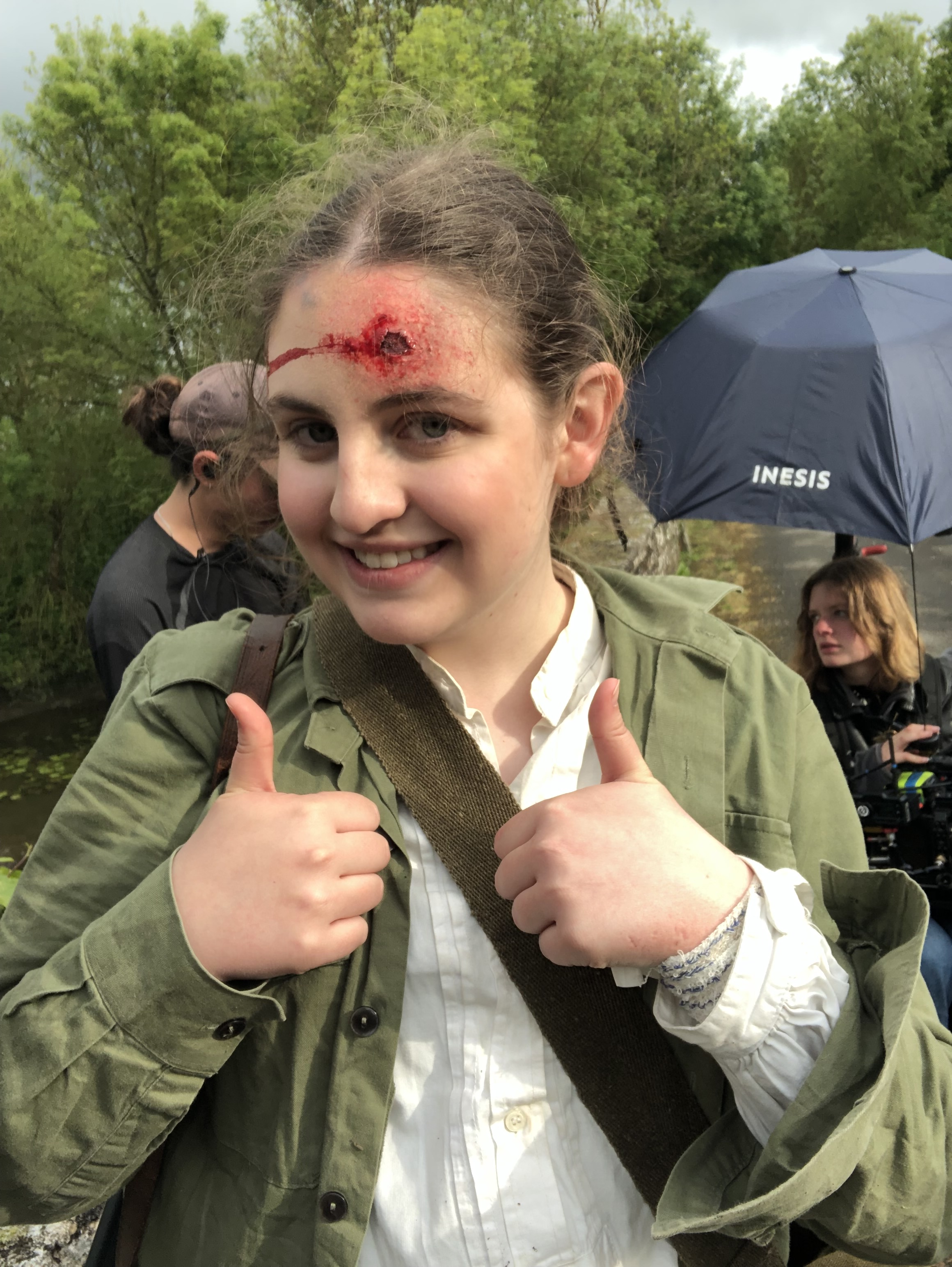 Pour ce tournage, sur la guerre, j’ai réalisé des maquillages naturels ainsi que plusieurs blessures sur vêtements et peau et pour la scène finale un impact de balle sur visage. En charge des coiffures, j’ai également réalisé toutes les coiffures.